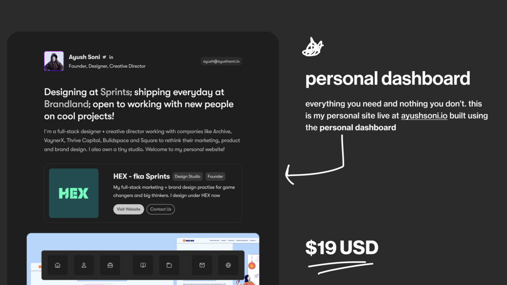 You will literally get the ayushsoni.io website in Framer - except the fonts (the site will be in Inter). The template has everything you need to ship an effective, functional and well-designed portfolio website in a matter of a few hours.
